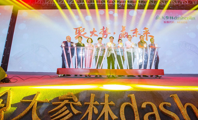 IM电竞药业集团董事长刘景萍女士与大参林医药集团董事长柯云峰先生、中国医药商业协会执行会长付明仲女士等嘉宾共同开启了“聚大势•赢未来"大参林工商合作峰会的大幕。